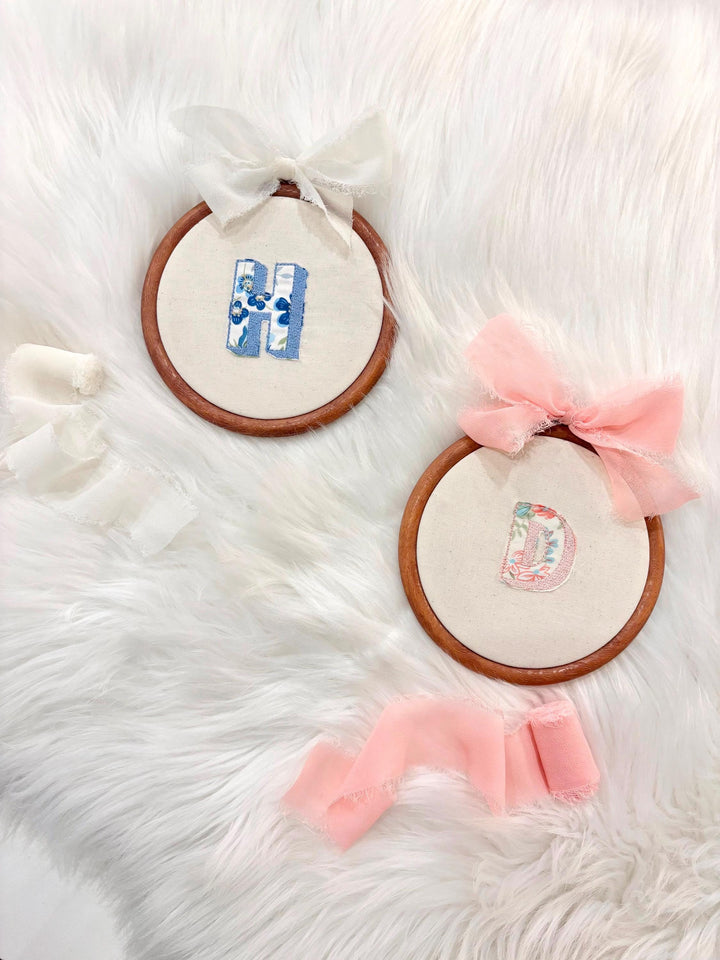 Baby's Initial + Name Custom Embroidered Hoop Keepsake Announcement Room Decor