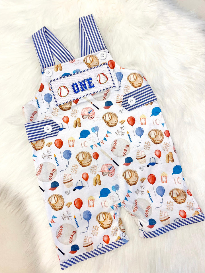 Rookie of the Year First Birthday Smocked Romper: Boys Baseball Outfit