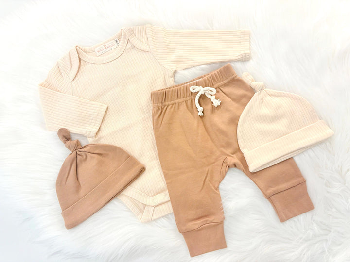 Organic Newborn Boy Girl Baby Leggings Headband Joggers Hat Set