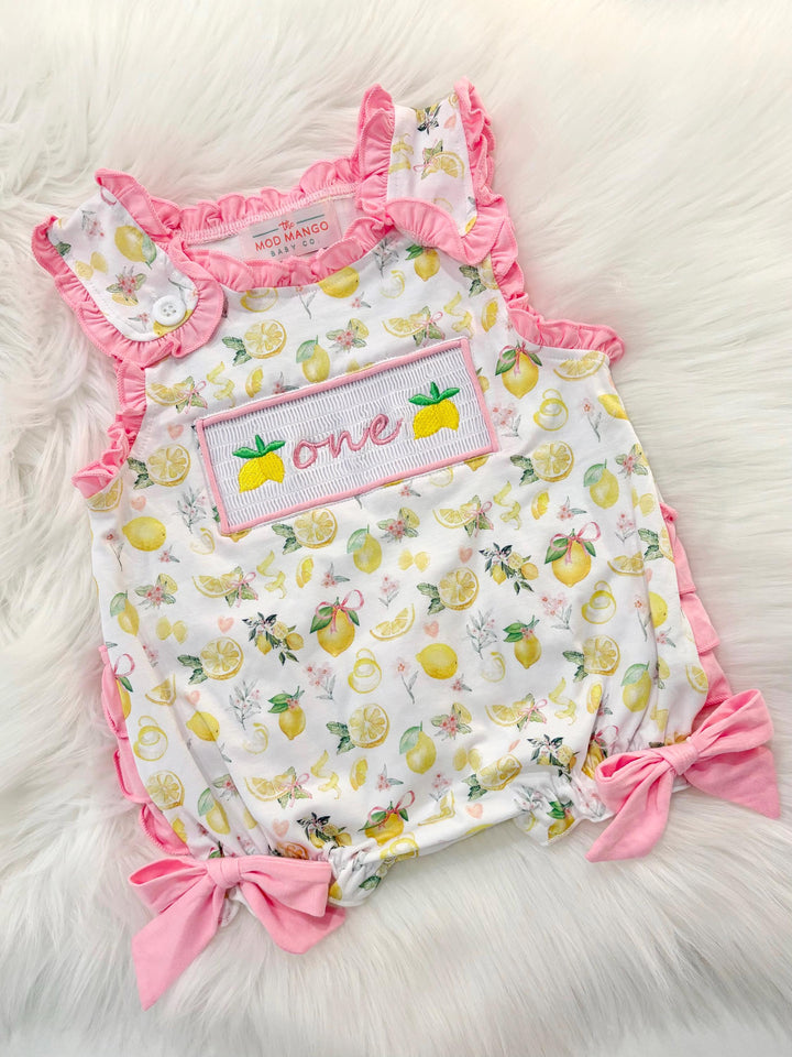 Lemon First Birthday Smocked Bubble Romper: Pink Lemonade Outfit