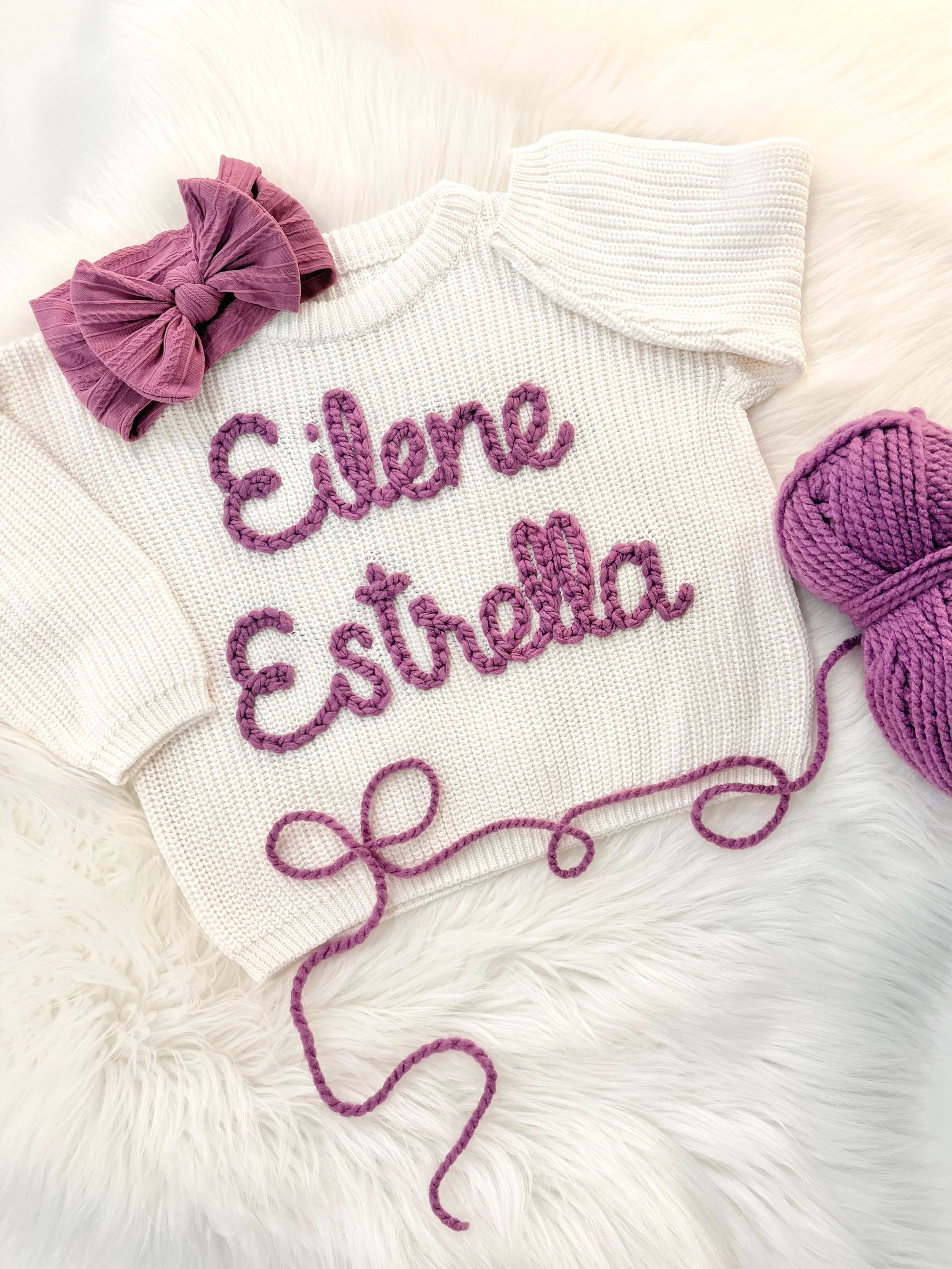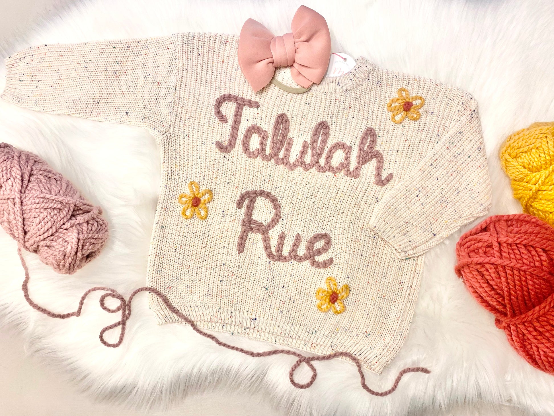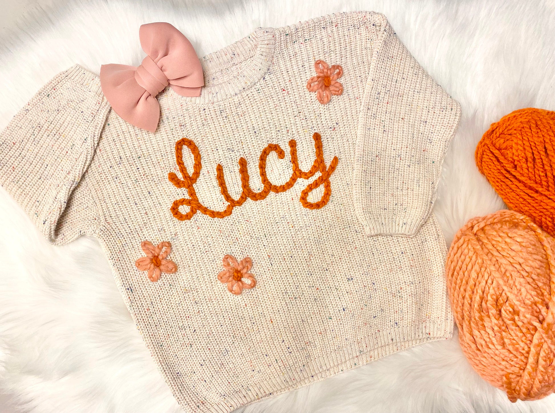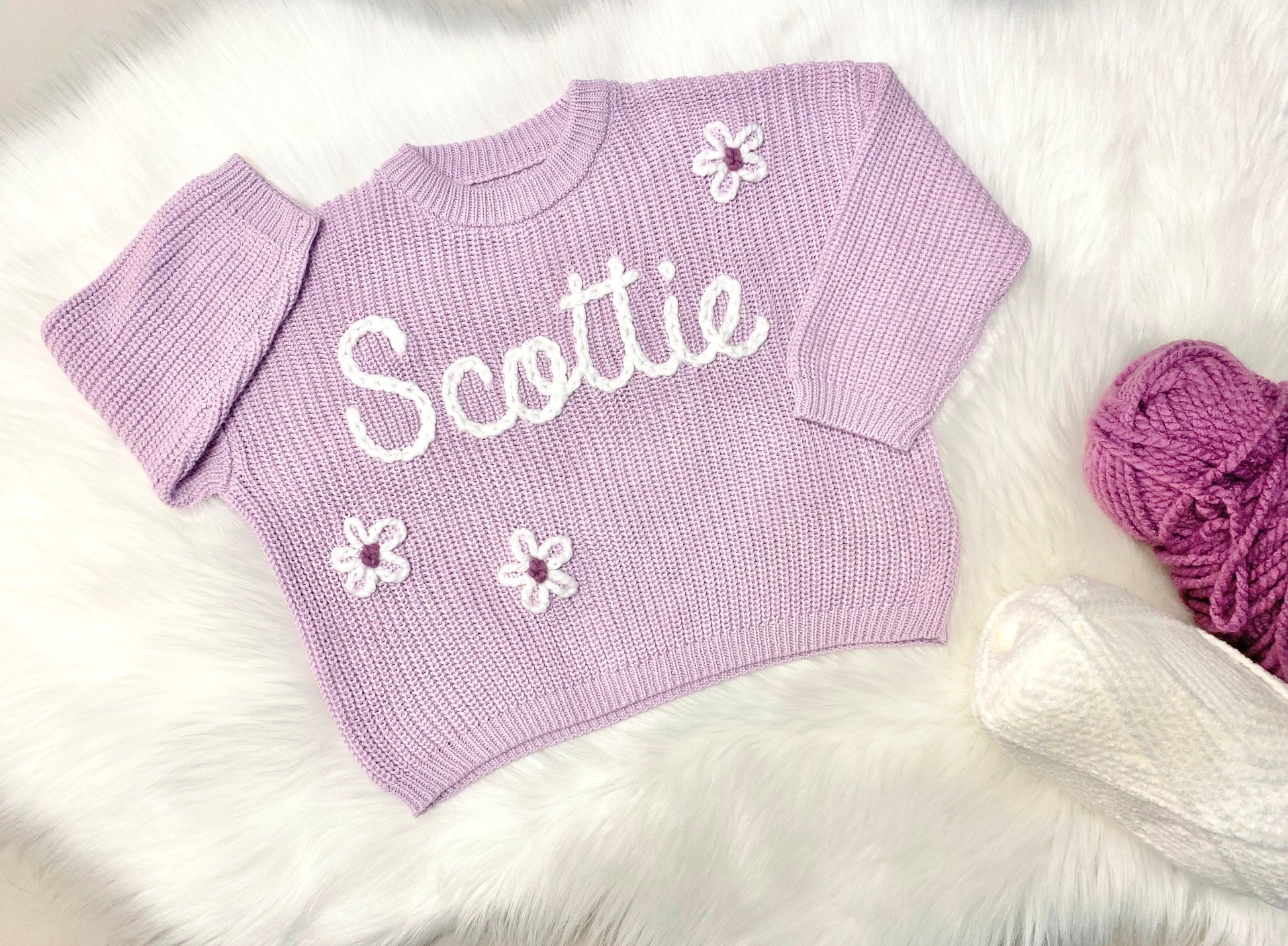 Hand Embroidered Baby Sweater Oversized Personalized Baby Toddler Name Sweaters