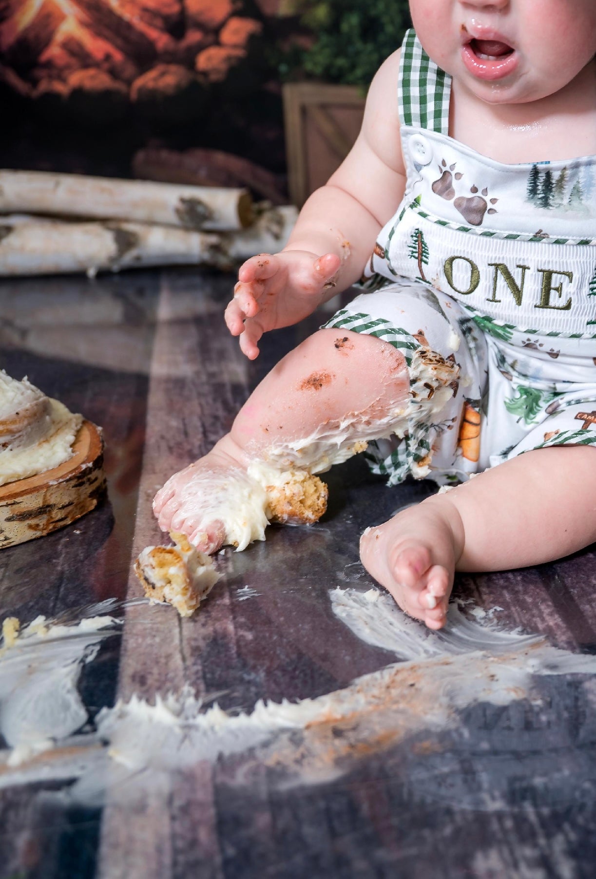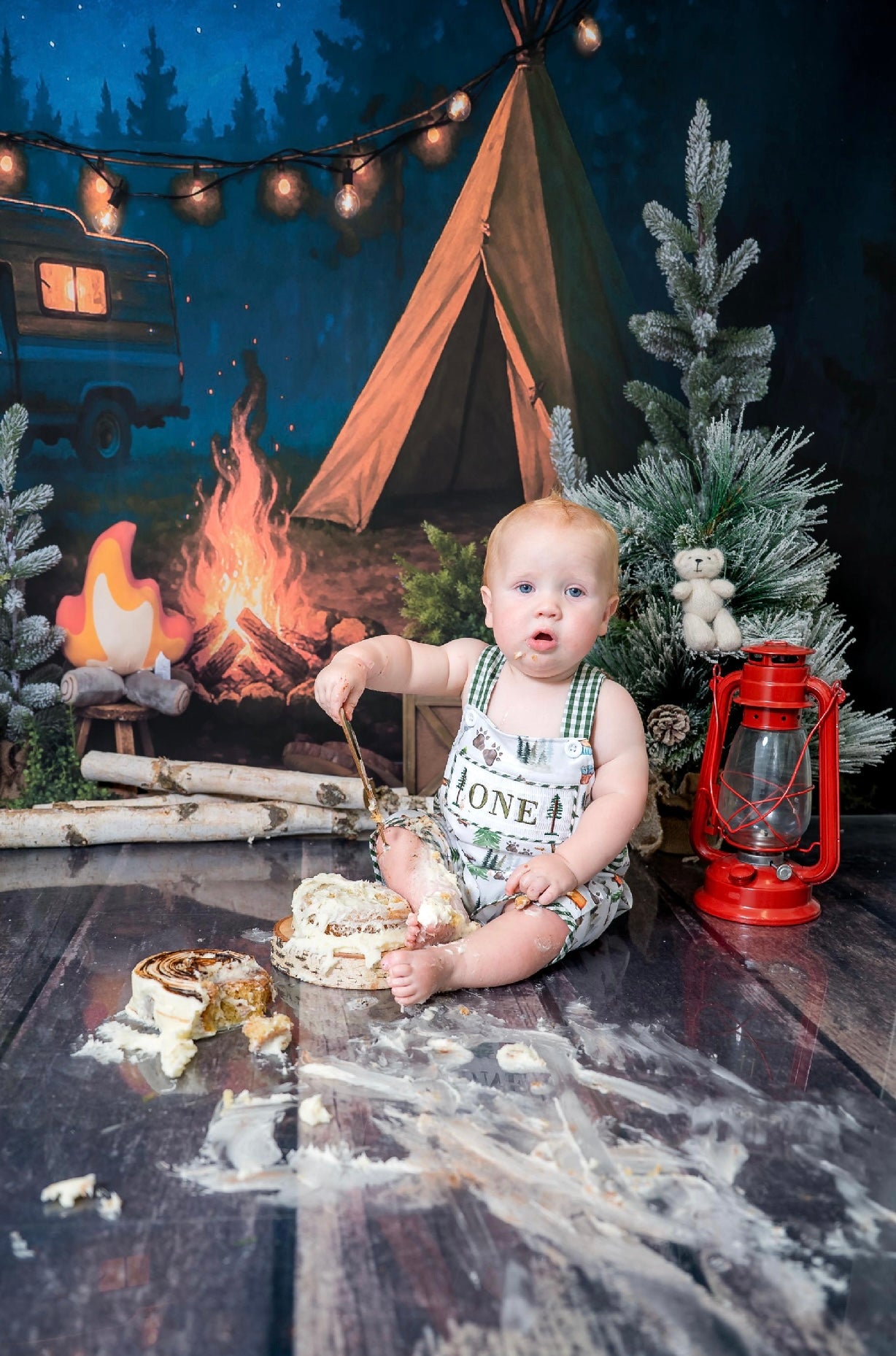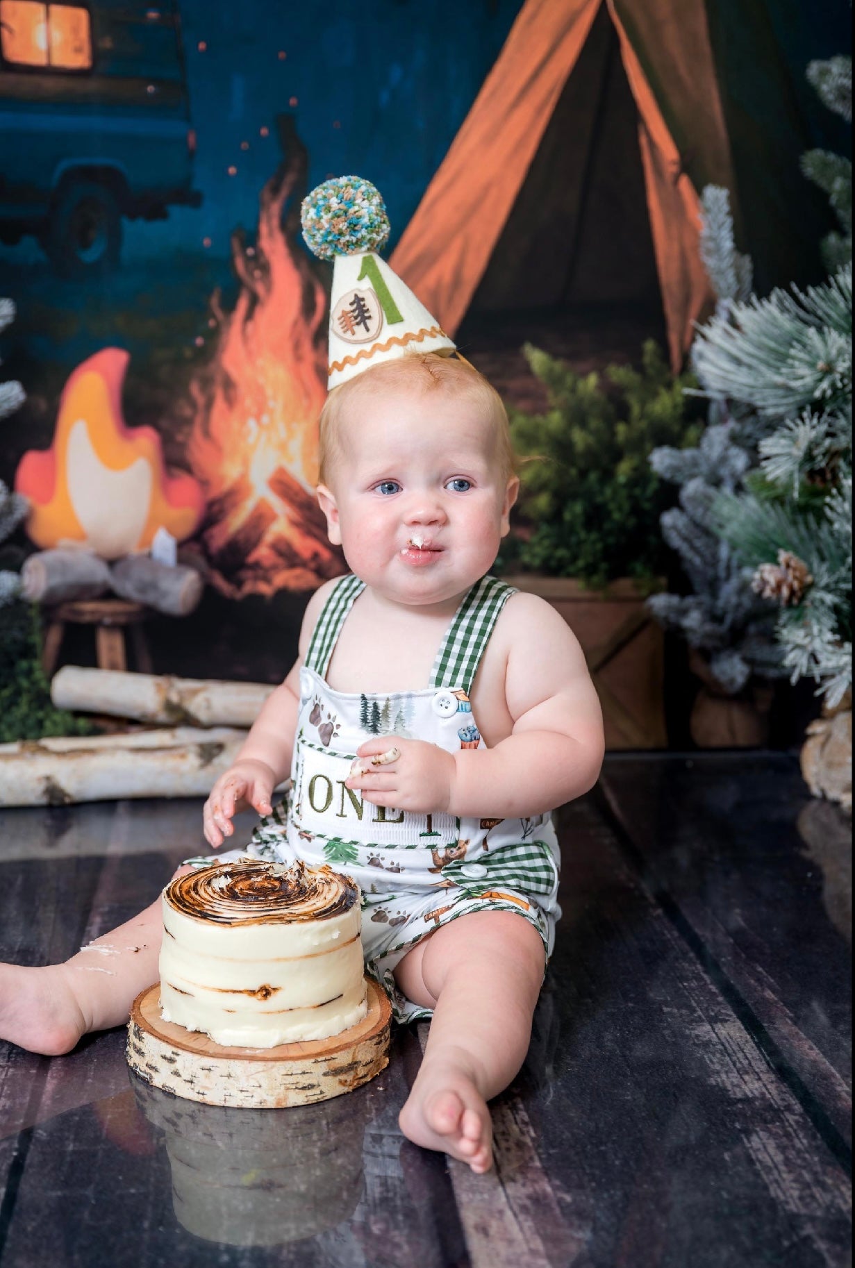 Camping ONE Birthday Boy Smocked Overalls Romper Outfit for Baby's First Birthday